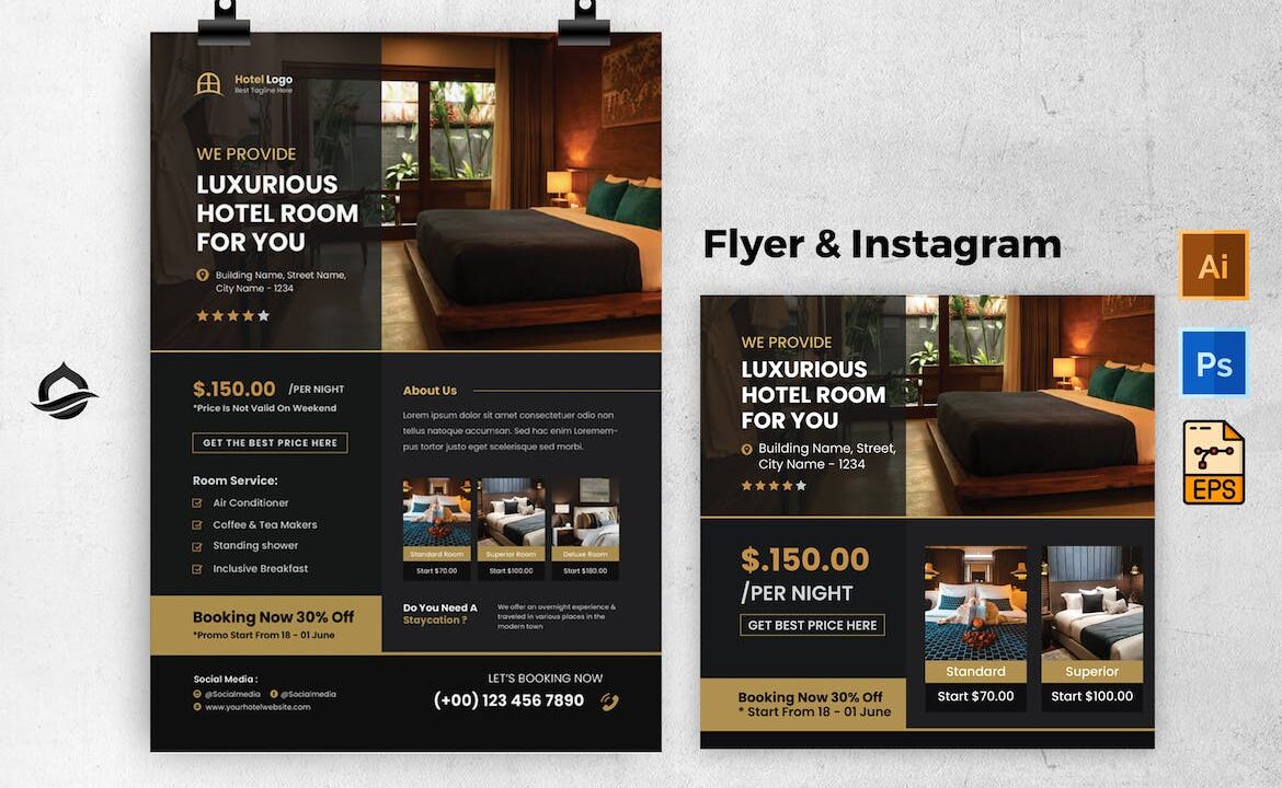 Modern Hotel Promotion Flyer & Instagram Post