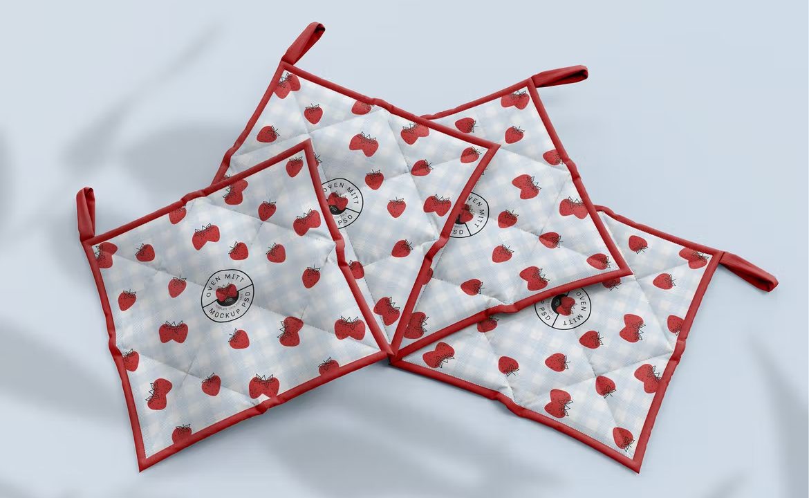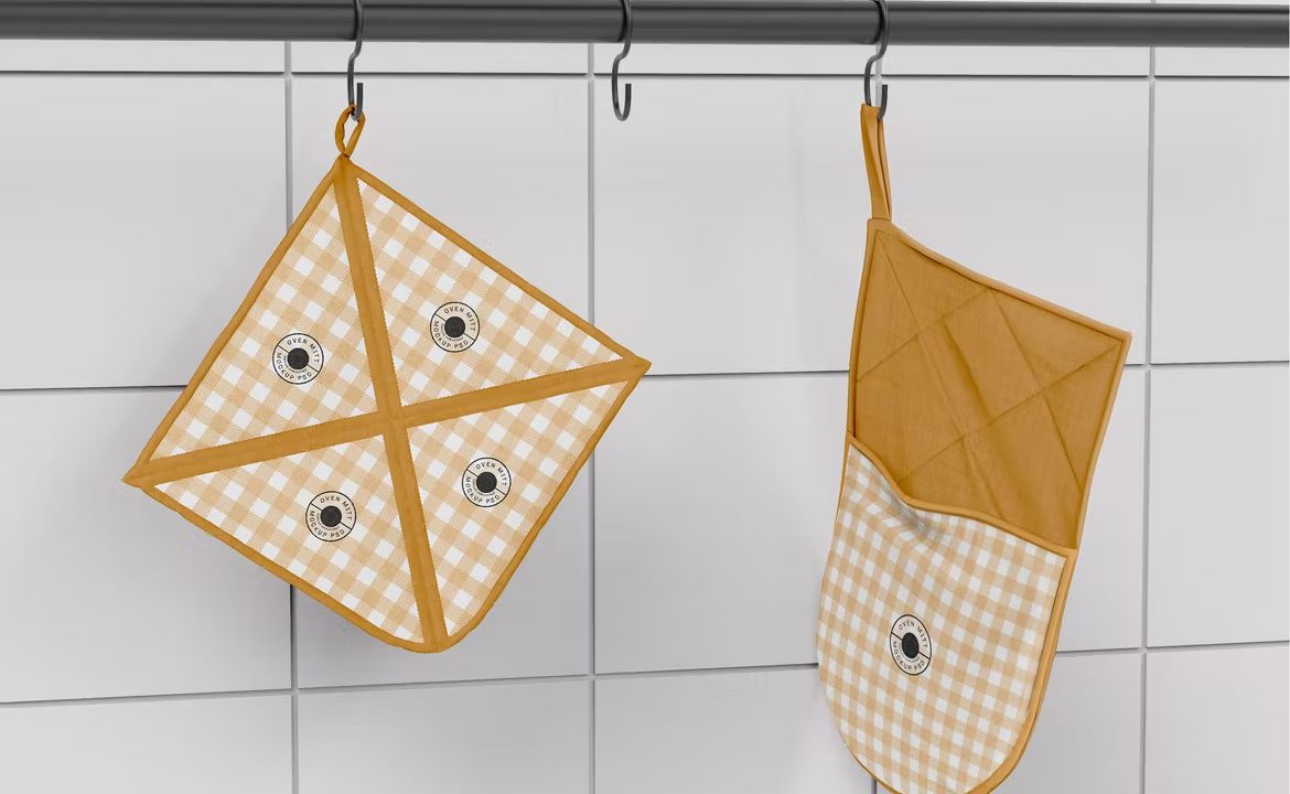 Oven Mitt and PotHolder Hanged from Bar in Kitchen
