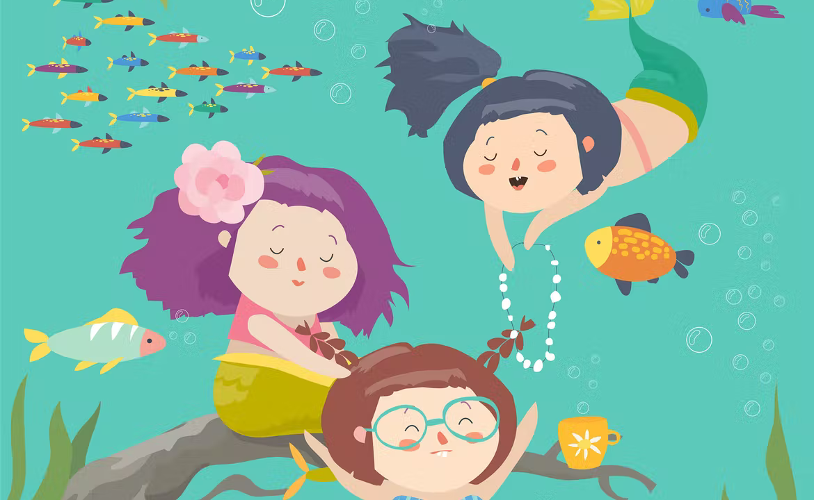 Cute cartoon mermaids with beautiful underwater