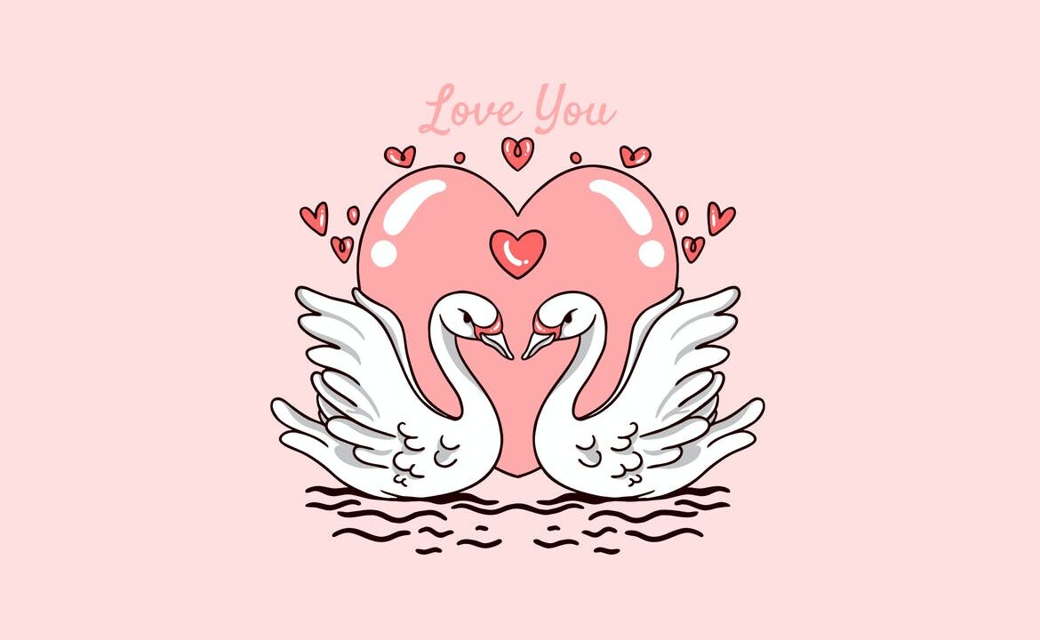 swan love valentine day illustration