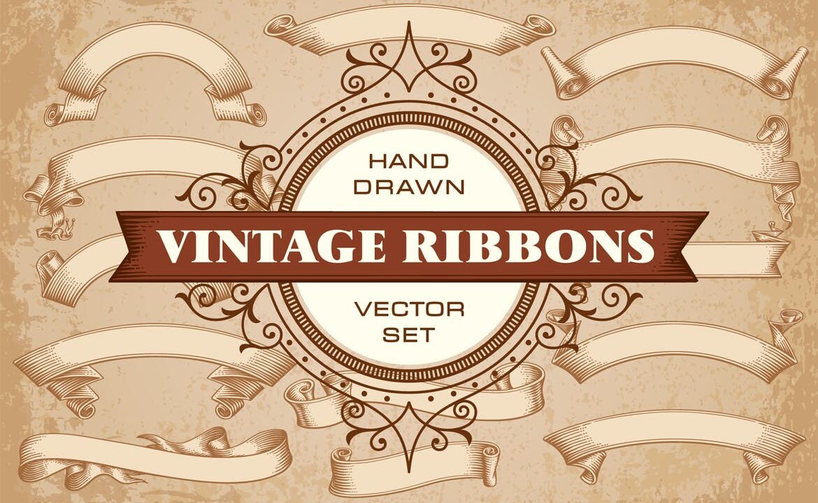 Vintage Ribbons Banners Vector Set