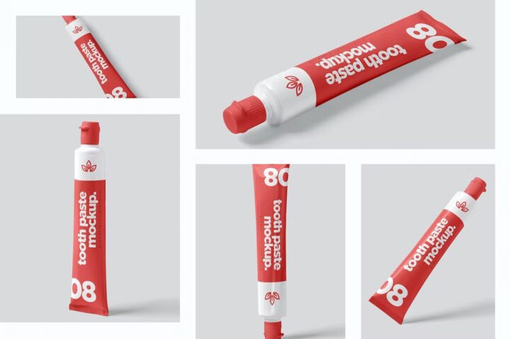 Use these amazing tooth paste mockups and showcase any of your tube packaging and branding designs realisticaly. Offering smart object feature to add your own design with a single click. These mockups also offer well-managed layers for the customization of shadows, effects and background.