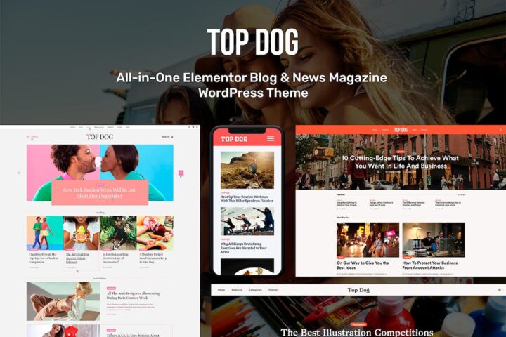 Top Dog is a colorful, refined, attractive & trendy WordPress Blog theme. It is apt for crash-test dummy, guest post, rouge, niche blogs, giver, giveaways, guides, how-to blogs, homer. Also, it fits the tell-all, business, cryptocurrency, professional, reverse, writer, world news, inspirational stories, affiliate. Furthermore, it is suitable for minimal, media, freelance, news-jacking, instructional, cheat sheet, entertaining, gaming. Also, it works for tutorial, industry, current events, checklists, infographics, case studies, profiles, interviews, expert opinions, reviews, comparisons. Ultimate Blog WordPress Layouts The theme features 9 different demos, a number of cool blog post layouts (such as Chess, Classic, Portfolio and many more), custom widgets & shortcodes etc and Elementor support using which you can add as many new blocks and layouts as you wish. Viral Magazine WordPress Plugins Due to one-click installation, the integration of custom widgets and shortcodes, and compatibility with a variety of plug-ins (amongst which are Elementor Page Builder, Instagram Feed, MailChimp for WP, ThemeREX Addons, etc.), the theme is super easy to set up and customize, in case you wish to sell things through your website, Top Dog has full WooCommerce support with respective shop design.
