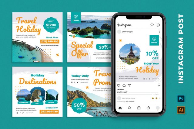 Simple Modern Brush Travel Instagram Post Templates are ideal for selling goods, bloggers, influencers, designers, writers, shop, magazines and many others. This elegant, minimalistic, modern & professional design will help you to create a unique atmosphere, giving your social media networks more time to make what you do best look even better!