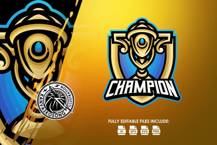 Trophy, Mascot, Logo, Esport, Award, Win, Winning, Winner, Awarding, Design, Template, Champion, Gaming, Gamers, Esports,