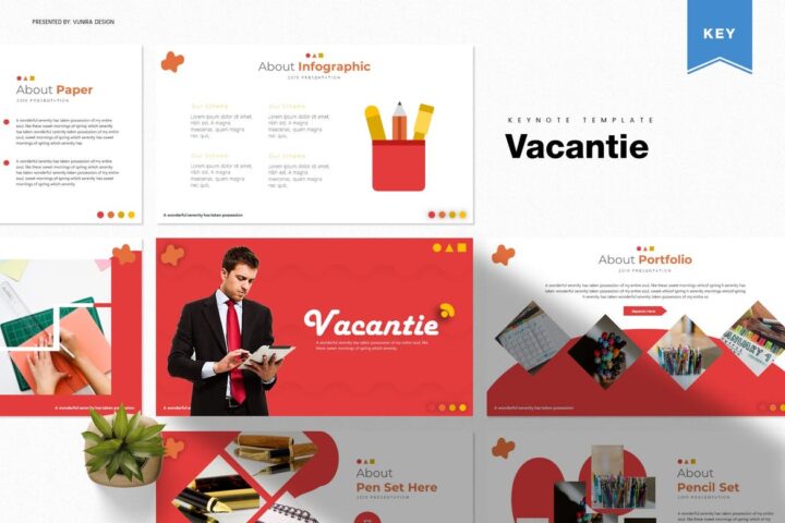 This is ** Vacantie | Keynote Template**- Get it now!, an great Keynote template for all business and personal needs. All elements on this template are editable from a Keynote shape, no need another software, editing just on Keynote, input your content, replace your image into placeholder, change the color, and , all presentation include an animated slide and present your slides to the world, Cheers….. 🙂