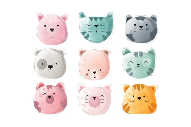 vector illustration of cute cat head, design can be used for print on clothes, bags, paper and for digital needs