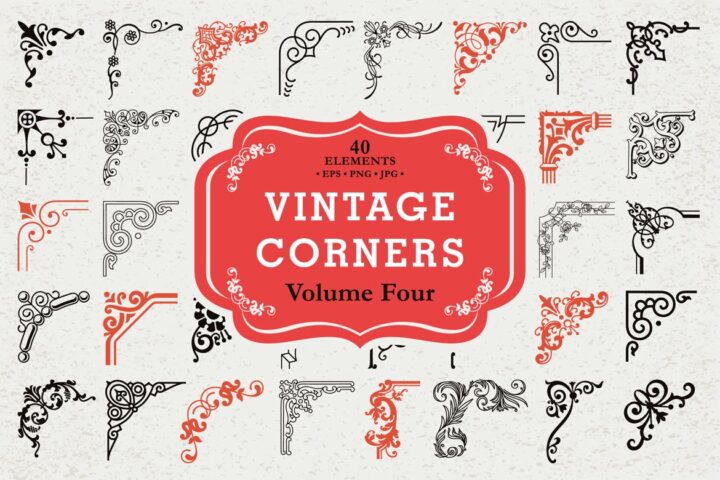 Big set of 40 vector classic vintage retro style corners. Nice for making new frames and borders, decorate your pages, invitations, certificates etc. This is not scanned vintage elements, so all shapes and details are nice, sharp and clean.