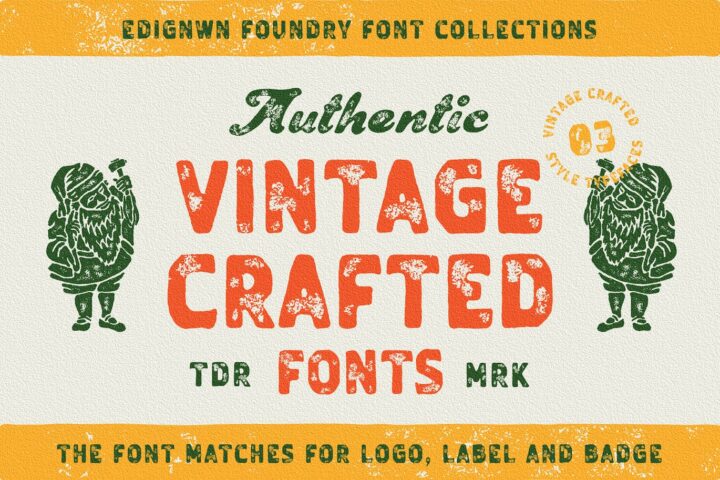 The Vintage Crafted Font is hand drawn typeface with retro themes. This font collections contain script and sans serif font. Every font comes with 3 style typefaces (regular, rough and stamp). This sans serif font includes some ligatures. The Vintage Crafted matches apply in some designs such as the logo, poster, label, badge, packaging, branding, quotes and more custom design.