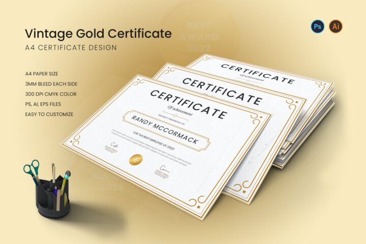 Vintage, Gold, Achievement, Appreciation, Award, Certificate, Certification, Corporate, Employee, Excellence, Graduation, Modern, Performance, Print, Professional,