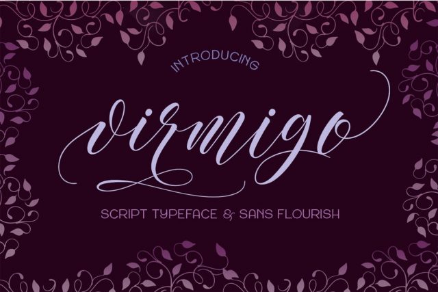Virmigo Script.otf Virmigo Script.ttf Virmigo Sans Flourish.otf Virmigo Sans Flourish.ttf Virmigo Web Fonts (eot, svg, woff, html)