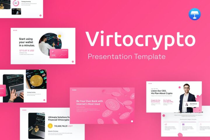 Virtocrypto Creative Keynote Template We can easily find lots of amazing presentation templates nowadays. And so, we need to shift the way we think not just to show the perfect slides, but to elevate the experience within it. Here we present to you Infographic Pack for accompanying every stage of your business development with holistic brand touchpoints, from embarking on a new project, building recognition among competitors, and finishing it with an improved goal proposition.