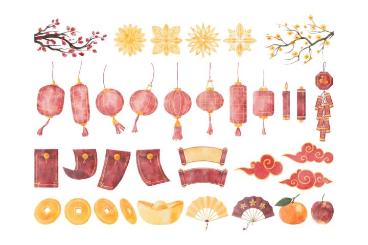 Watercolor Chinese Element. It can be used for Chinese New Year design needs. Illustrated with hand painted illustration.