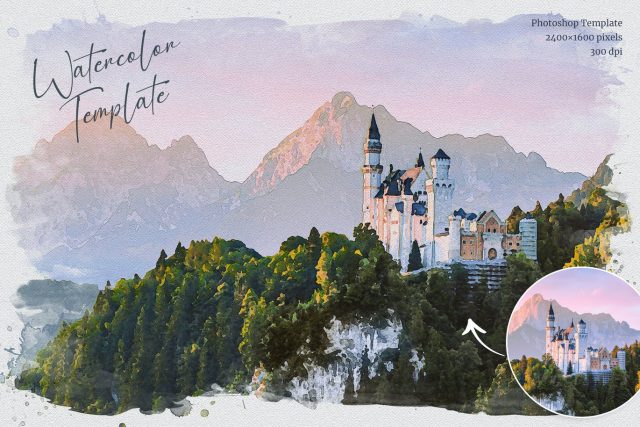 Make your photo painted with watercolor The realistic effect of watercolor painting in just a couple of seconds. Easy to use template via smart object replacement. Creative art with paint splashes on watercolor paper texture. Get watercolor art from your photos!