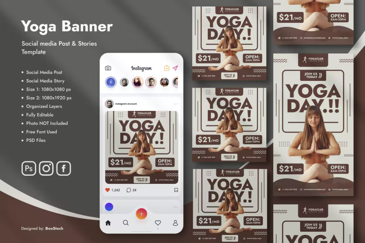 This is social media template for YOGA Social Media Template. This template are fully editable and customisable(text, color scheme, photo, & other graphics)