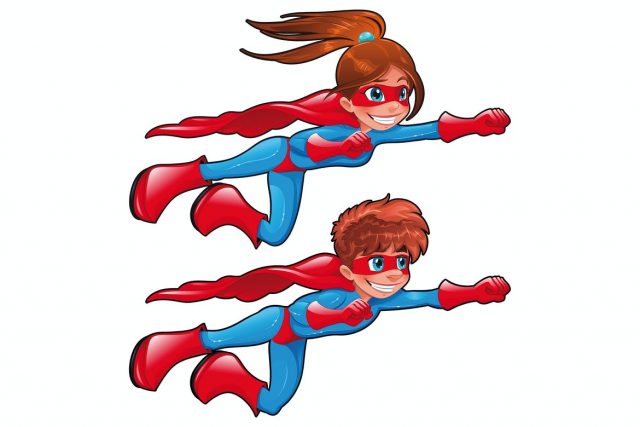 Young superheroes. Funny cartoon and vector characters. Isolated objects