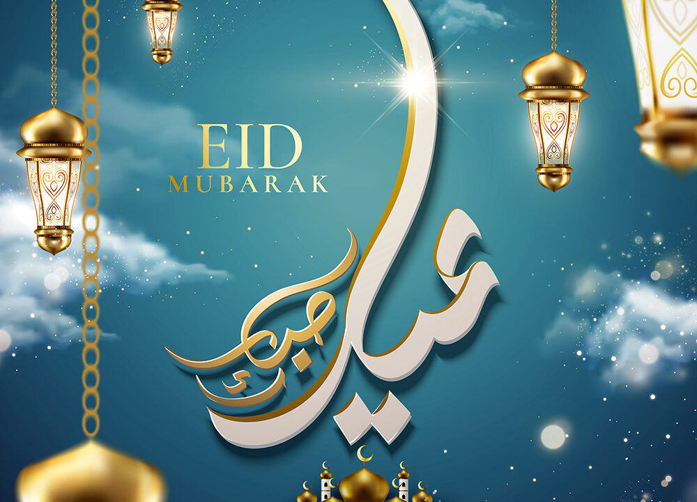 happy holiday written arabic calligraphy eid mubarak with arabesque flower